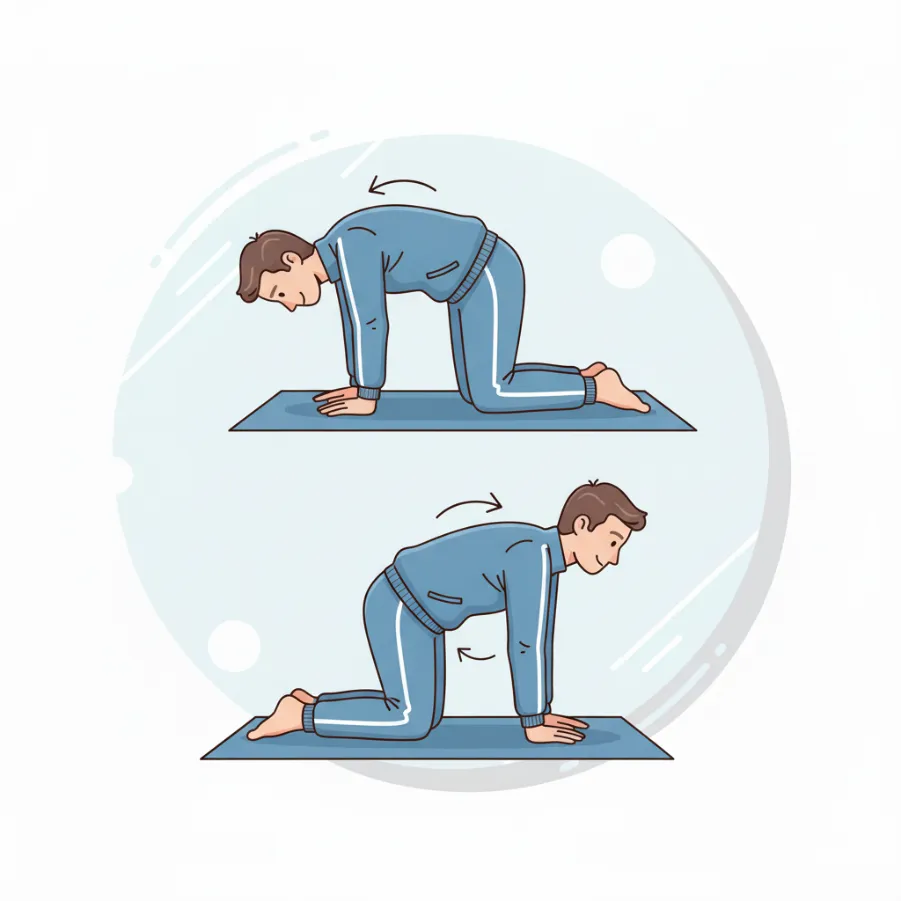 另外,「貓牛式」動作也能幫助骨盆活動,減少下背緊繃。